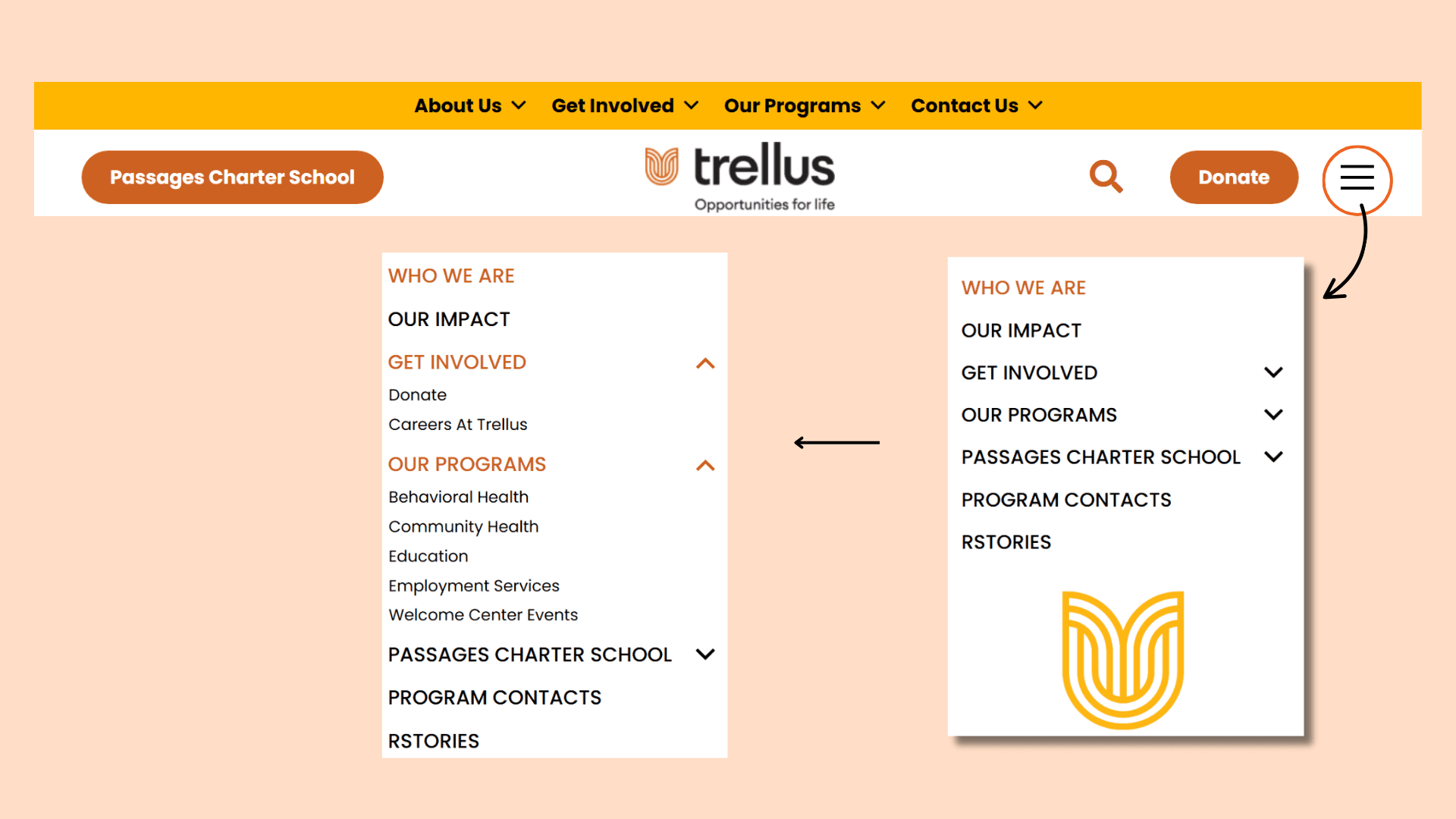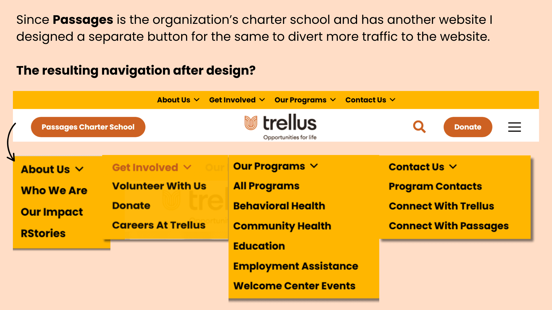 Trellus is a nonprofit serving immigrants, refugees, and under-resourced communities through programs including behavioral health, workforce development, adult education, and community health. As the organization grew, its website navigation became cluttered and inconsistent—making it difficult for users to find critical services.