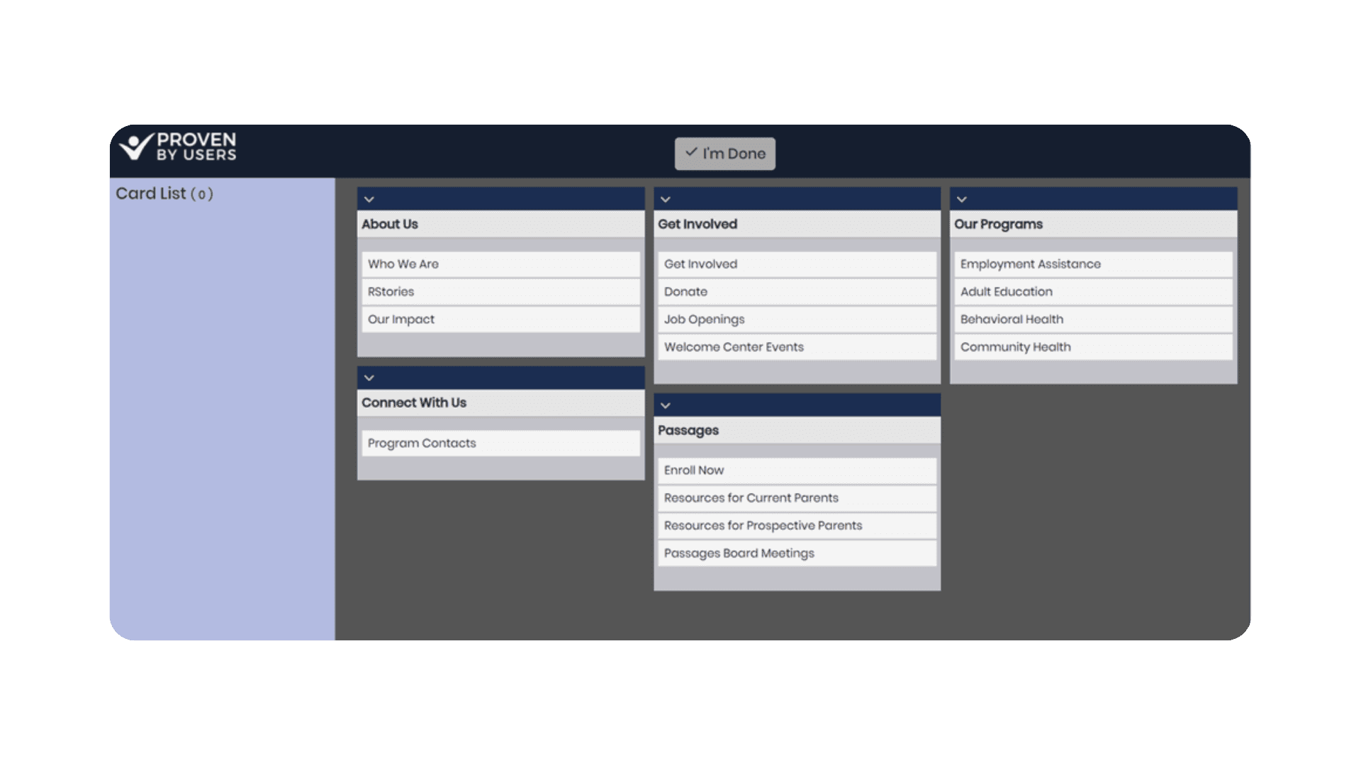 Based on audit insights, I reorganized content through a card sort, grouping pages by user intent rather than internal structure.